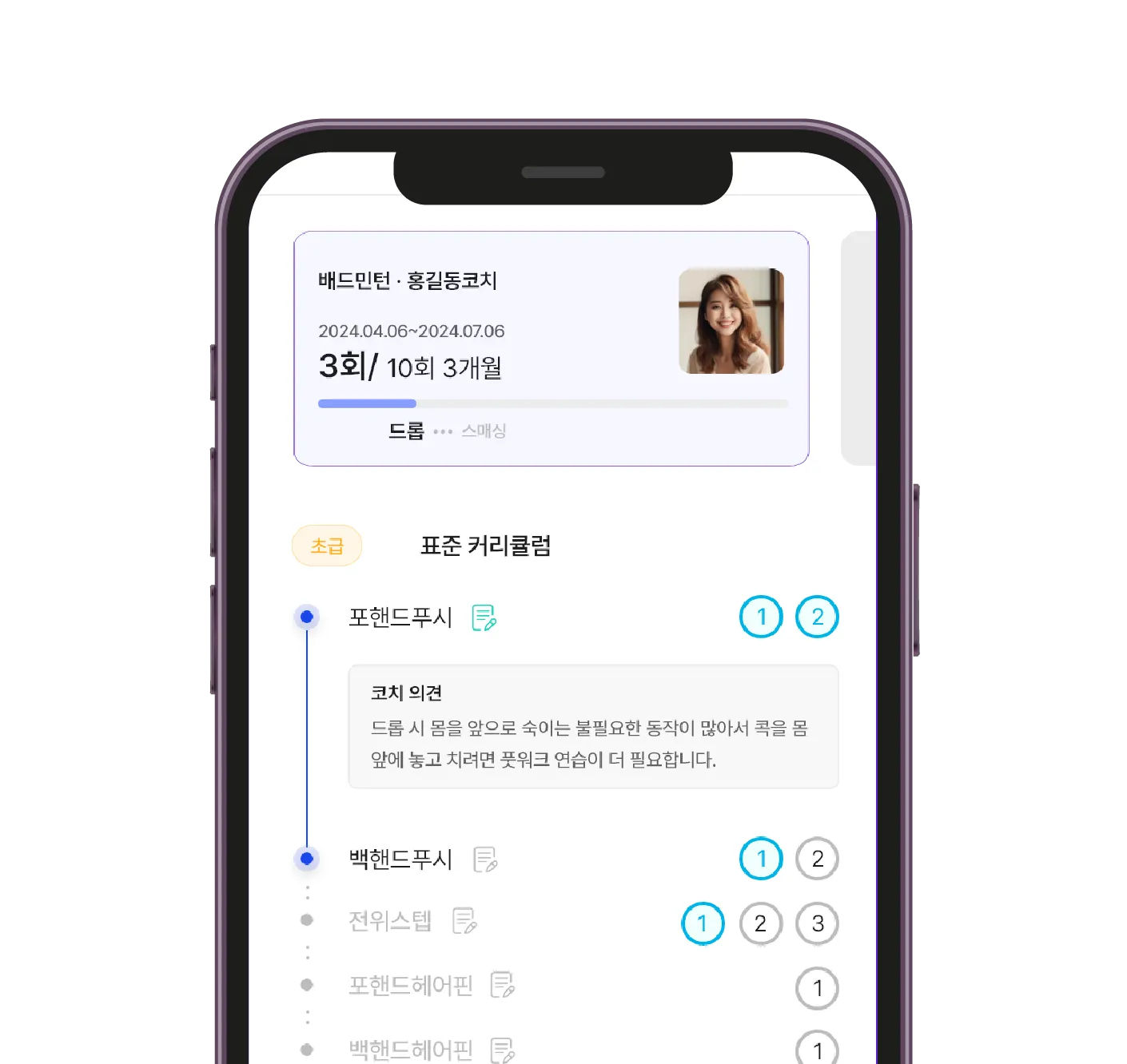 나이스코치에는 내가 받은 운동 이력이 저장되어 언제 어디서나 하던 운동을 그대로 이어서 할 수 있어요.